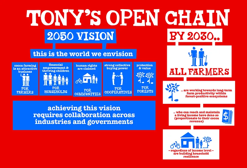 By combining its ‘5 Sourcing Principles’, Tony’s Open Chain seeks to end structural poverty and establish more equitable relationships with cocoa cooperatives in Ghana and Côte d’Ivoire.